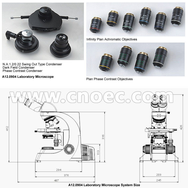 A12.0904 Laboratory Microscope, New Generation of infinity color corrected optical systems with wide field high eyepoint eyepieces, and plan achromatic objectives, present you sharp and bright micro images.